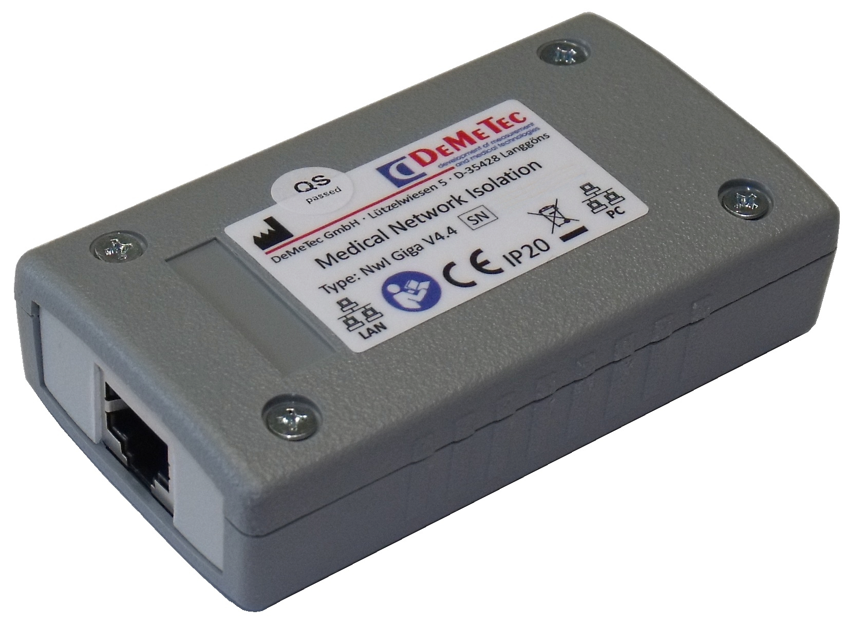 Der „Medical Network Isolator“ ist ein galvanischer Netzwerktrenner, bzw. Netzwerkisolator. Aufgrund seines besonderen Aufbaus benötigt dieser Netzwerkisolator keine externe Stromversorgung. Er ist für Netzwerke mit einer Geschwindigkeit von bis zu 1000MBit (Gigabit) geeignet.